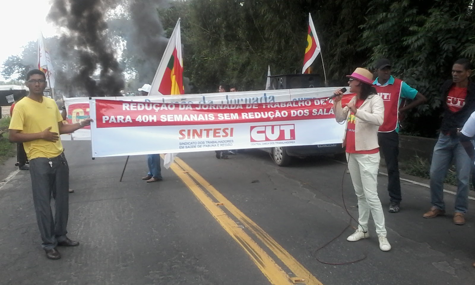 Em Itabuna, na manhã desta sexta-feira, a CTB e a CUT interditaram a BR 415, no quilometro 24, para levantar as bandeiras da classe trabalhadora, os sindicalistas de todo o país levantaram suas bandeiras, em apoio ao projeto popular da Lei da Mídia Democrática, contra a cobrança de pedágio na BR 101, rechaçando o Projeto de Lei 4330 (que regulamenta a terceirização), exigindo o fim do fator previdenciário, a redução da jornada de trabalho para 40h semanais, a reforma agrária, o fim dos leilões do petróleo, um reajuste digno para os aposentados, a igualdade de oportunidades entre homens e mulheres, transporte público de qualidade e maiores investimentos na saúde e na educação.